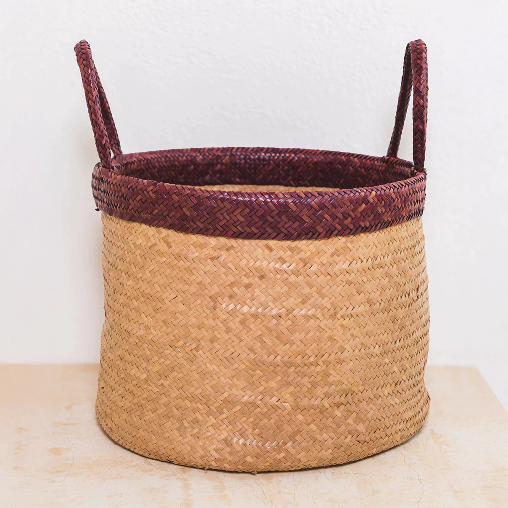 Feito à mão com fibras naturais de piaçava, este cesto traz alças resistentes para facilitar o transporte e uma borda pintada em cores vibrantes que dão vida e personalidade à peça. Com medidas de 40x25 cm, é ideal para organizar e decorar com estilo único.