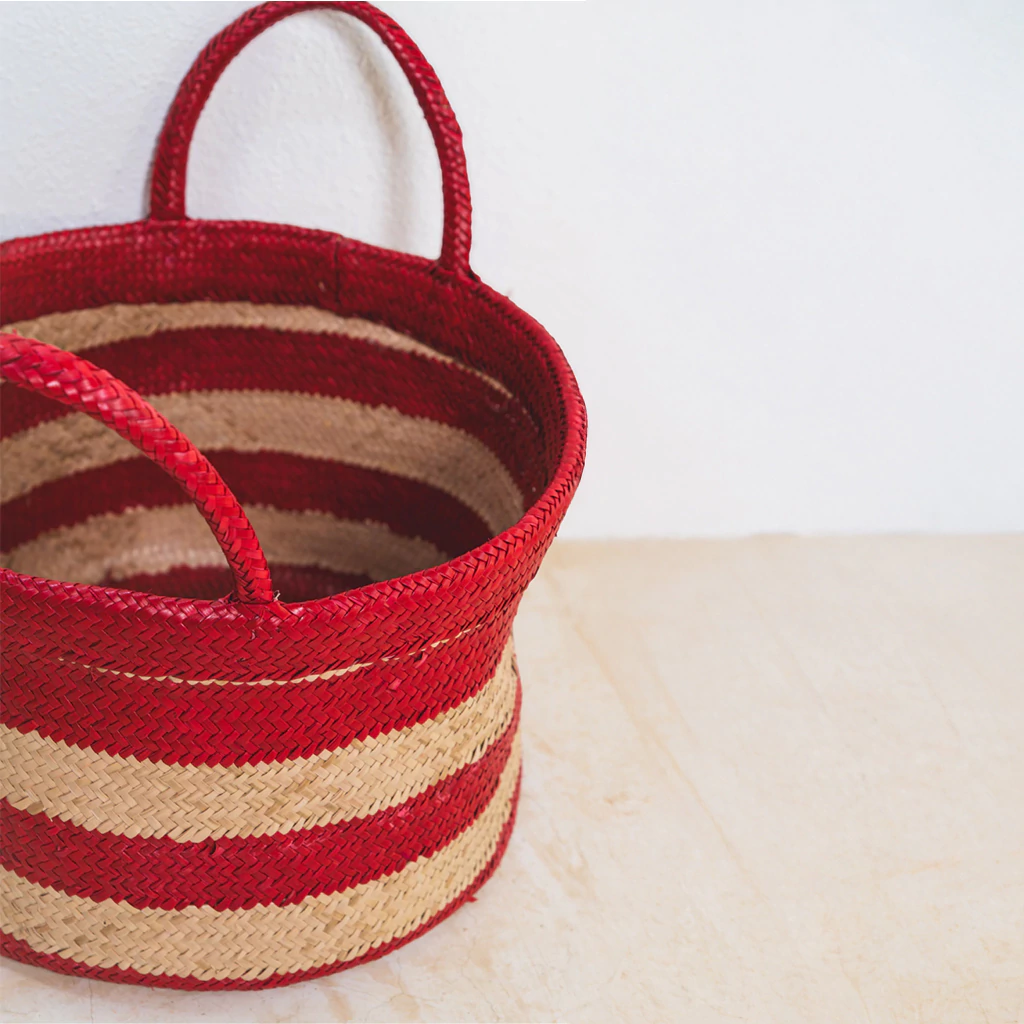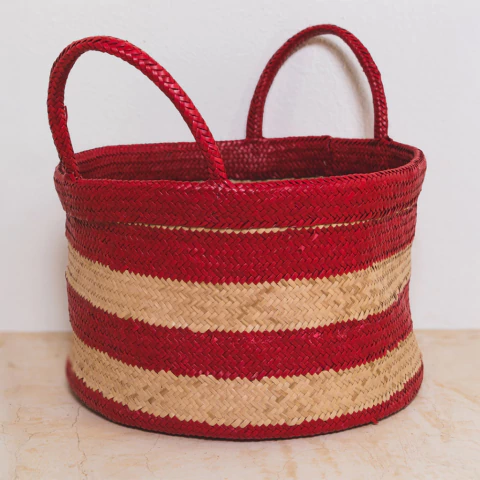 Feito à mão com fibras naturais de piaçava, este cesto traz alças resistentes para facilitar o transporte e uma borda pintada em cores vibrantes que dão vida e personalidade à peça. Com medidas de 40x27 cm, é ideal para organizar e decorar com estilo único.