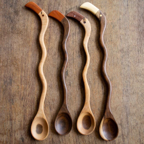 A madeira de ypê possui alta resistência à umidade e uma coloração rica, com variações naturais de tons que tornam cada colher única. Além disso, seu acabamento é feito com óleo natural, livre de produtos químicos, o que garante segurança no uso com alimentos e valoriza os veios da madeira.