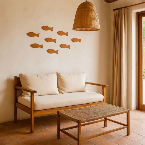 Feito à mão com barro natural, o Peixe de Barro é uma peça decorativa versátil que traz rusticidade e charme artesanal para sua casa. Ele vem com uma corda para ser pendurado, mas também fica lindo apoiado em mesas, aparadores ou prateleiras, transformando qualquer espaço com personalidade.
