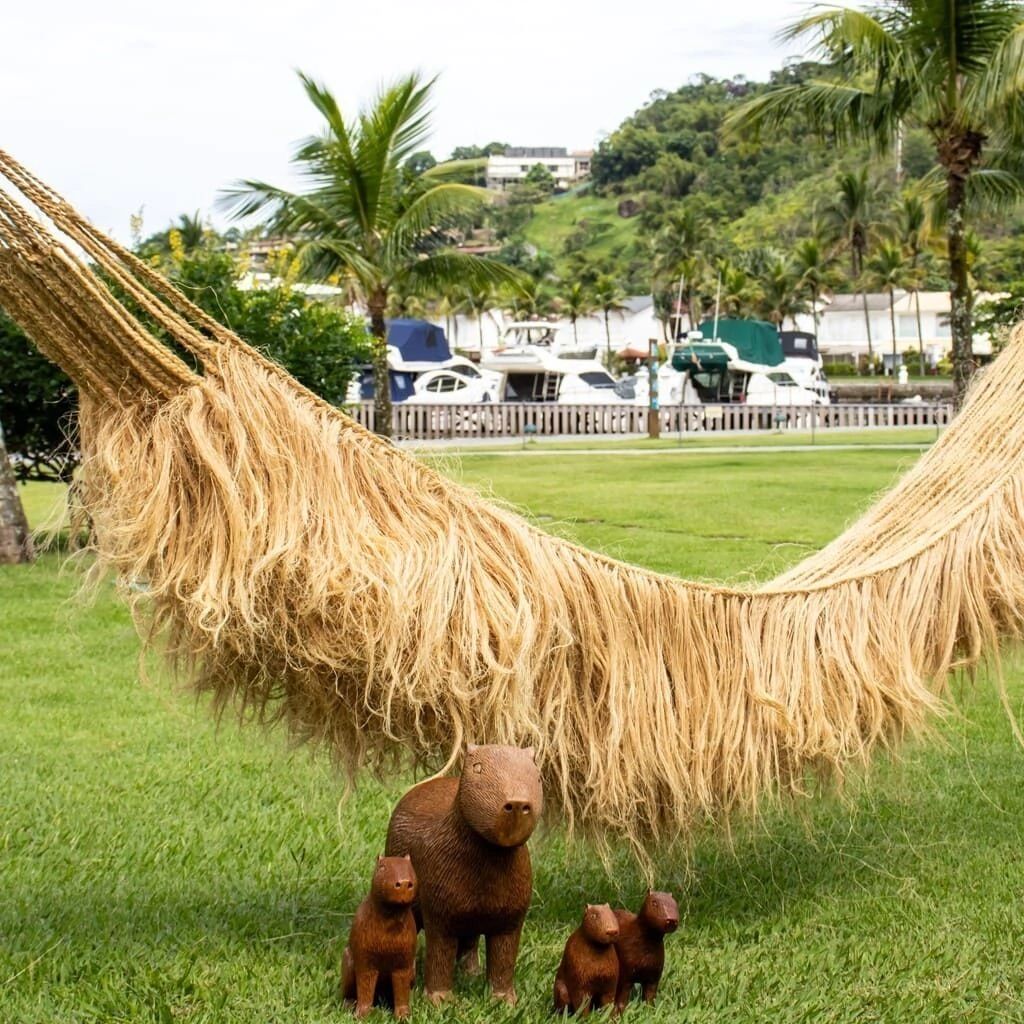 Apesar da textura firme, a Rede de Carnaúba não pinica. Com o uso, ela se adapta ao corpo e se torna cada vez mais agradável ao toque, mantendo seu charme natural.