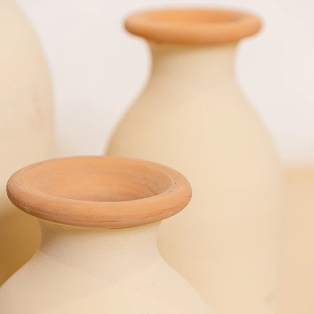 Seu design atemporal permite que as peças sejam usadas juntas, criando uma composição equilibrada, ou separadas, adaptando-se a aparadores, mesas, prateleiras ou nichos. Ideal para flores secas, folhagens ou como objetos decorativos, o vaso acrescenta suavidade e harmonia ao espaço.